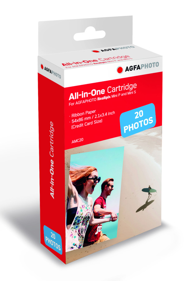 The AMC20 pack contains all-in-one cartridges to enable you to make 20 prints in 5.3 x 8.6 cm (2.1 x 3.4 inch) format with your Realipix Mini P printer or your Realipix Mini S instant camera. 4Pass technology does not use ink and its cartridges are extremely easy to replace. Simply slide the used all-in-one cartridge out of the device and replace it with a new one.