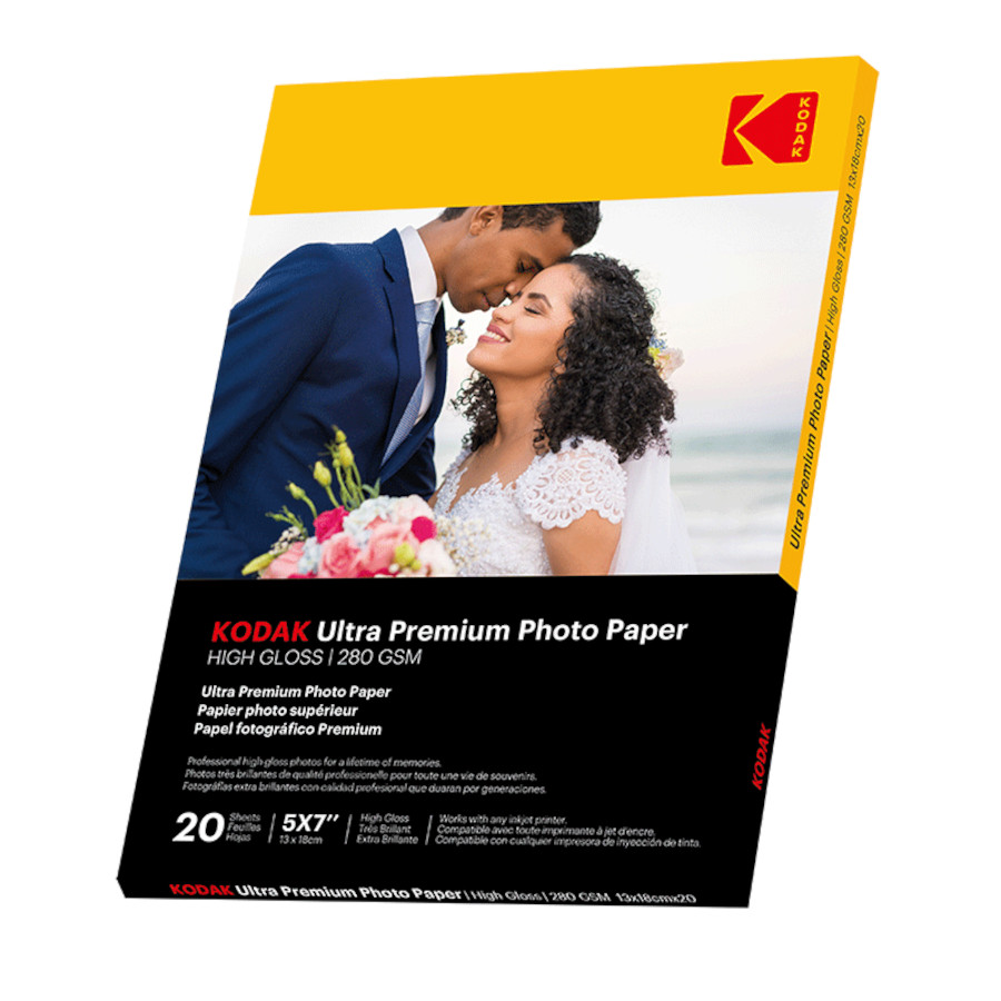 KODAK Ultra Premium Photo Paper - 20 sheets of premium photo paper pack - 13 x 18 cm (5x7 inch) - High gloss finish - 280 gsm - Compatible with all inkjet printers.