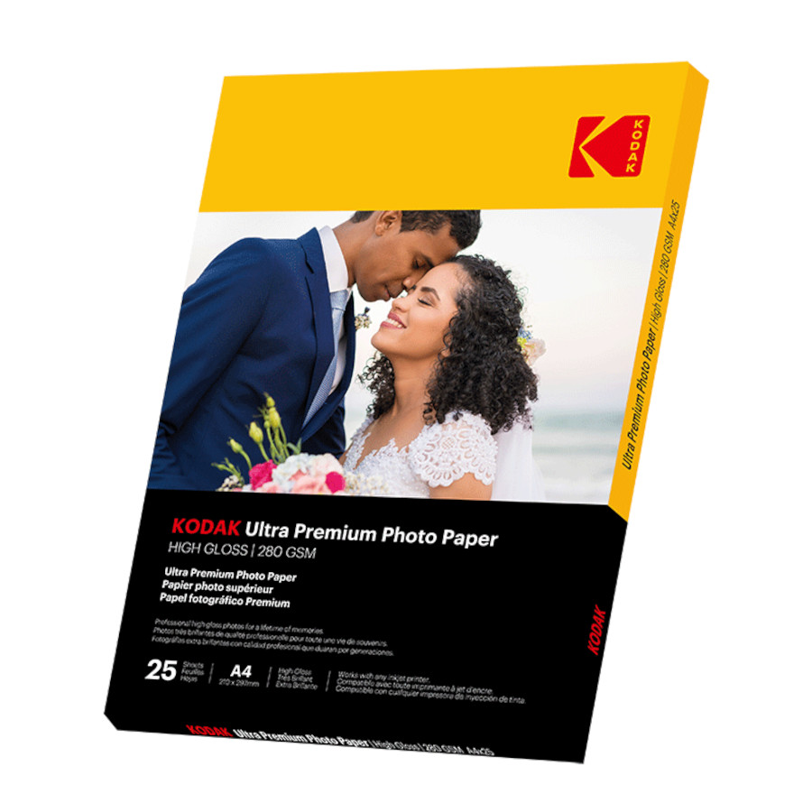 KODAK Ultra Premium Photo Paper - 25 sheets of premium photo paper pack - 21 x 29.7 cm format (A4) - High gloss finish - 280 gsm - Compatible with all inkjet printers.