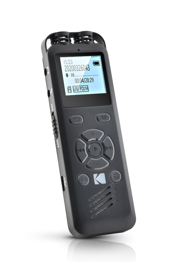 The compact design and intuitive operation of the KODAK VRC250 digital voice recorder is your convenient every day option for instantly recording quality audio in WAV/MP3 formats. Its lithium battery and hands-free recording functions makes it suitable for all needs and is good for recording brief ideas as well as several hours of interview taken in any location. Its many advantages include its loudspeaker and its Plug and Play technology making it easy for you to listen to and take full advantage of your saved recordings.