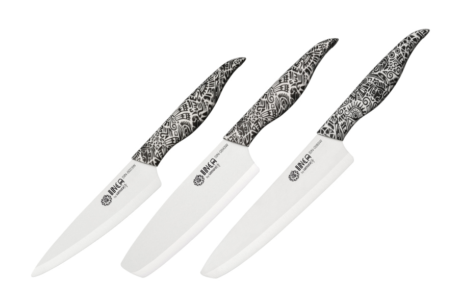 Samura INCA set of 3 kitchen knives: Utility knife, Nakiri knife, Chef' s knife
