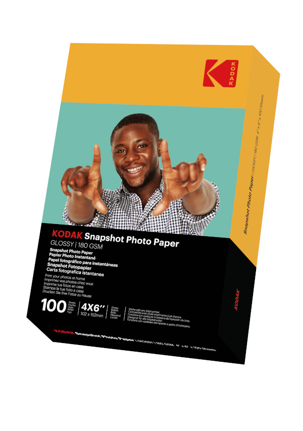KODAK SnapShot Photo Paper - 100 sheets of photo paper - 102 x 152 mm - Glossy finish - 180 gsm - Compatible with all inkjet printers.