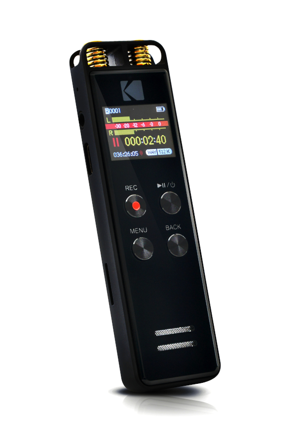 The compact metal design and stereo omnidirectional microphone of the KODAK VRC550 digital voice recorder makes it your all-round best option for instantly recording high quality audio in WAV/MP3 formats. Its lithium battery and micro-SD card slot make it equally suited to recording brief ideas or several hours of interview, and is adaptable to any use thanks to its hands-free recording and noise reduction functions. Its advantages include its loudspeaker and its Plug and Play technology making it easy for you to listen to and take full advantage of your saved recordings.